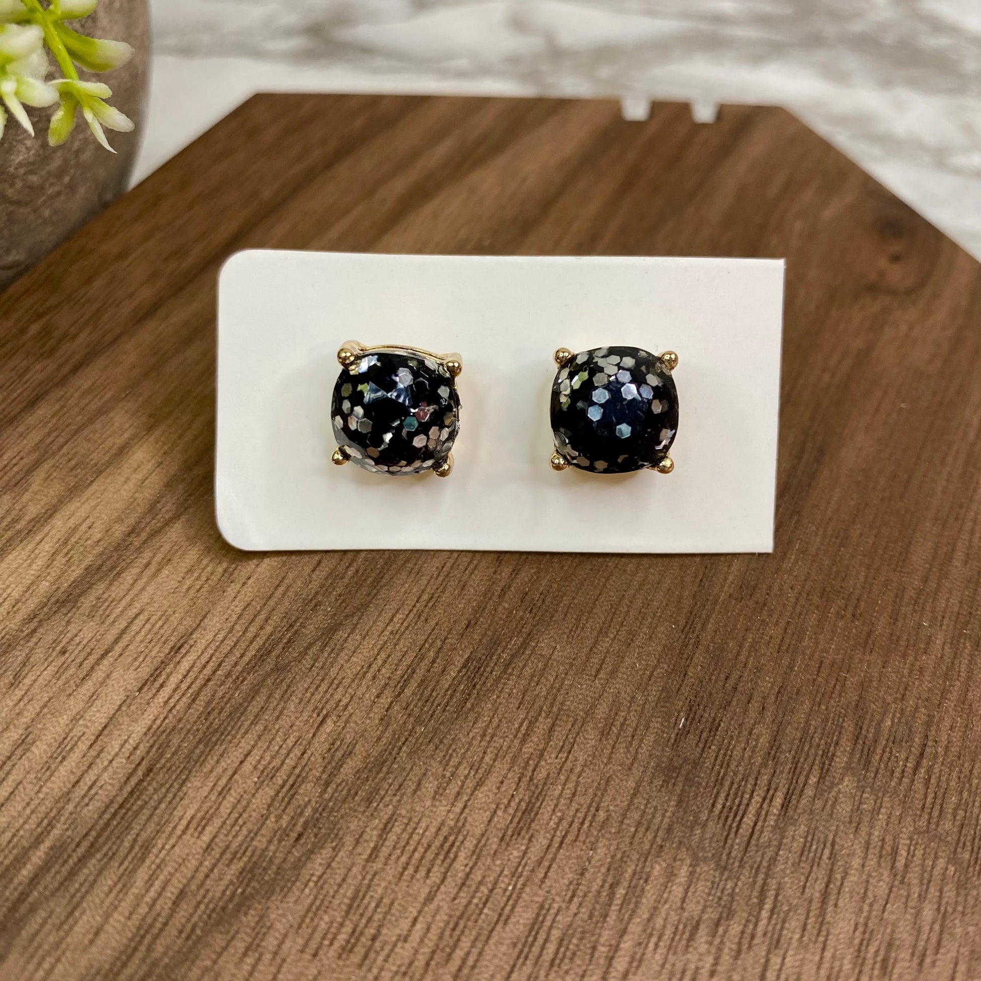 Metal base with acrylic glitter smooth studs, approximately 1/2”