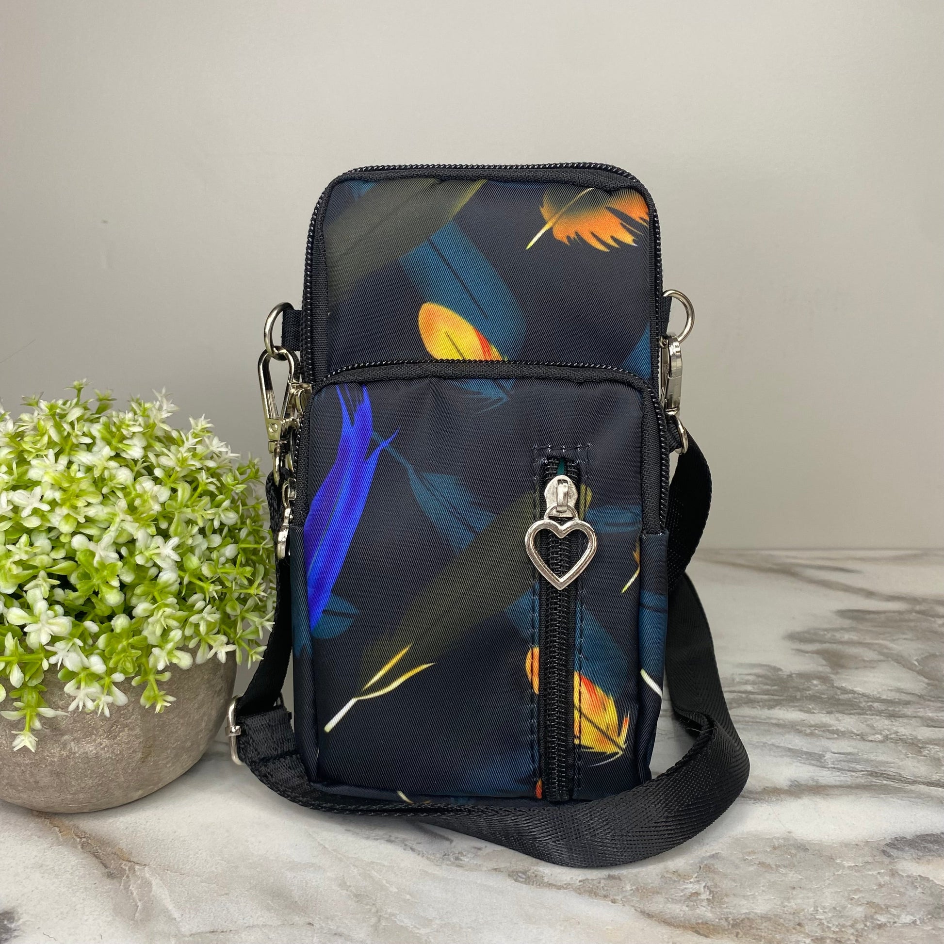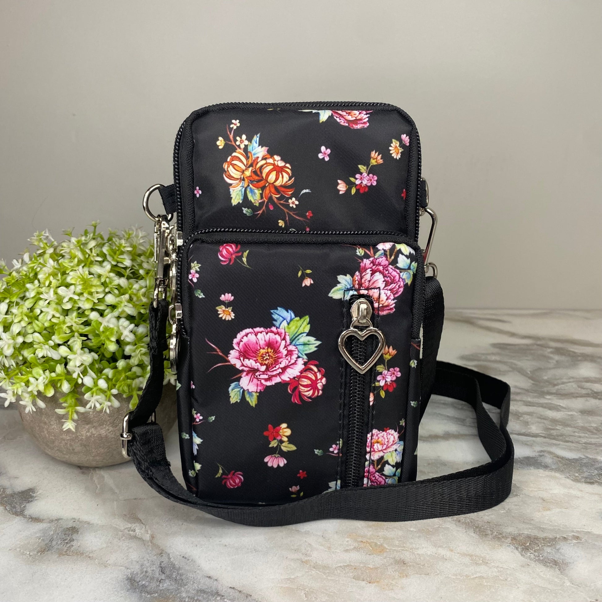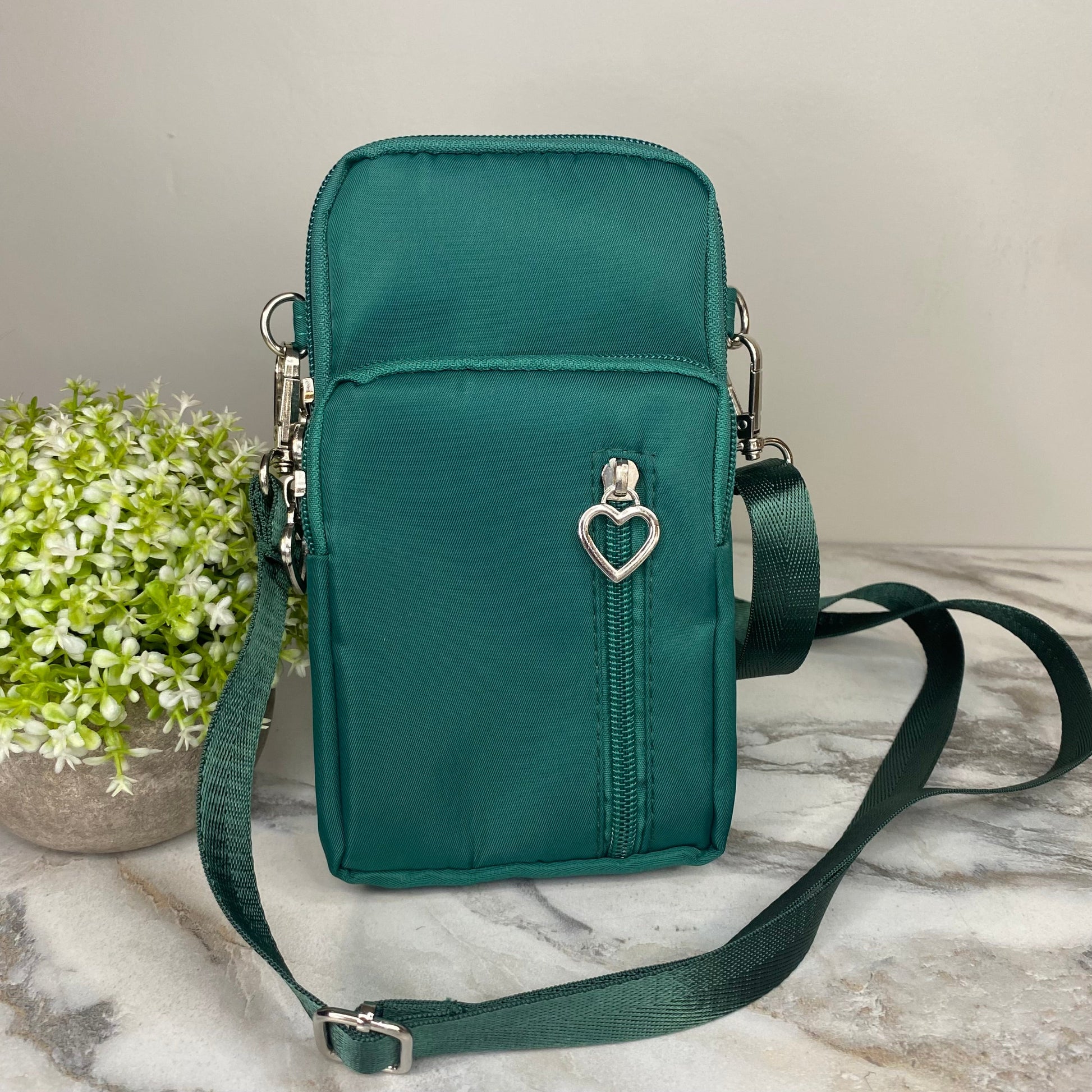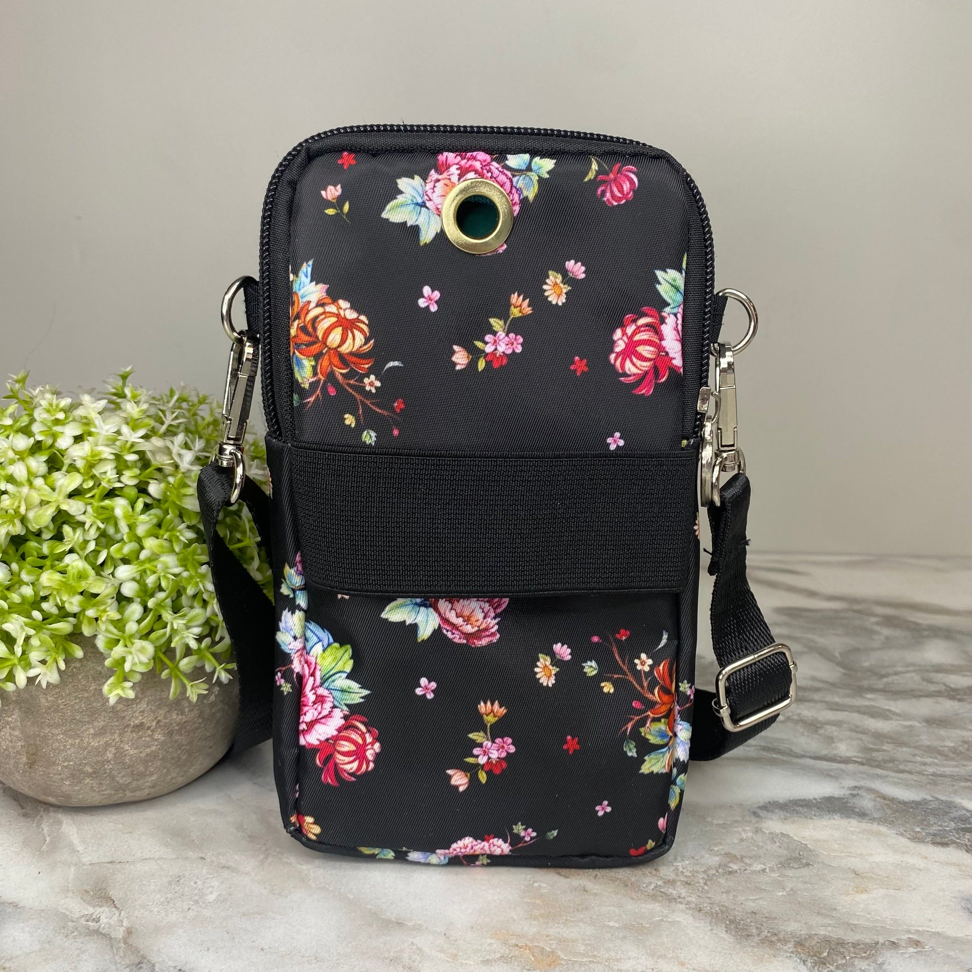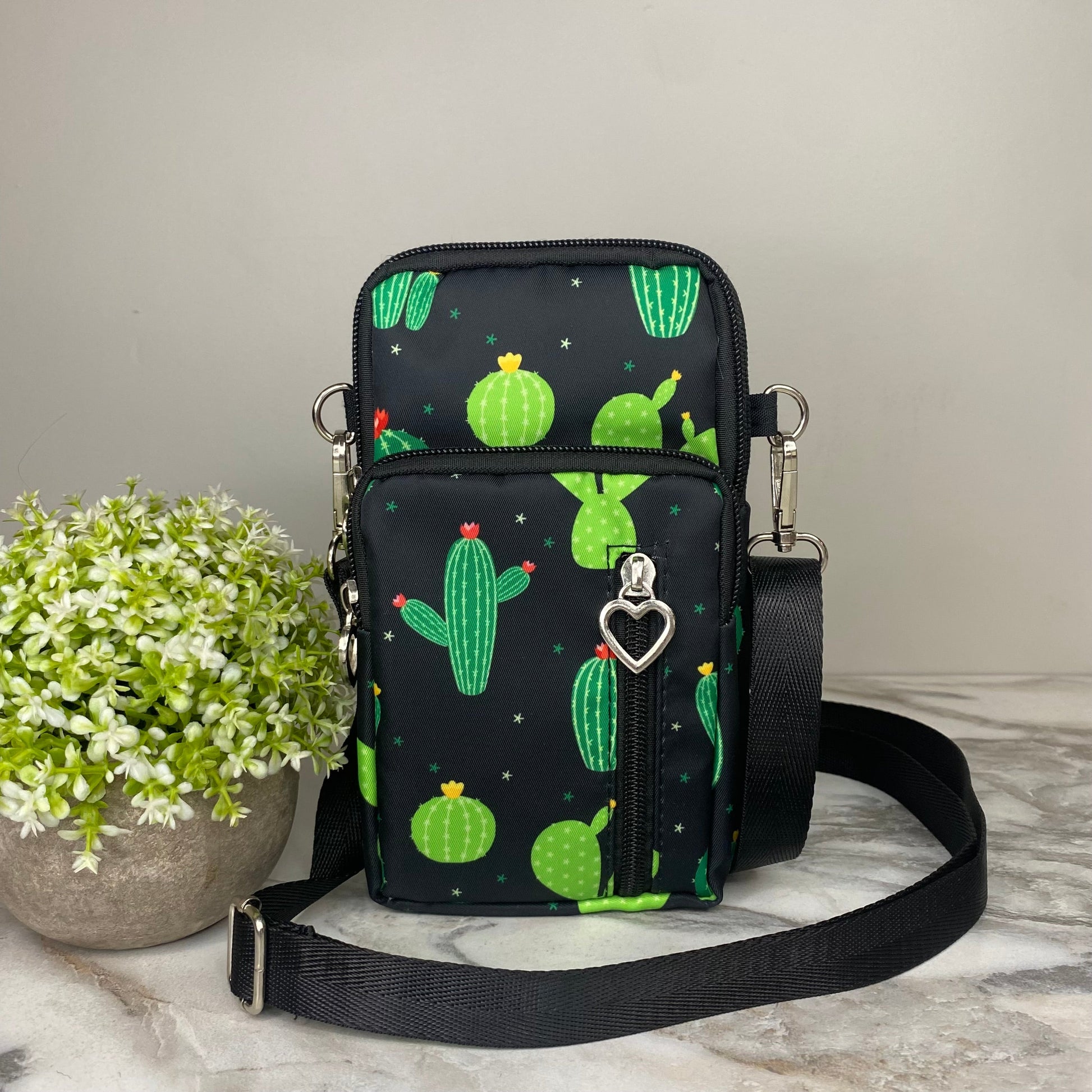 - Removable shoulder or crossbody strap + arm band