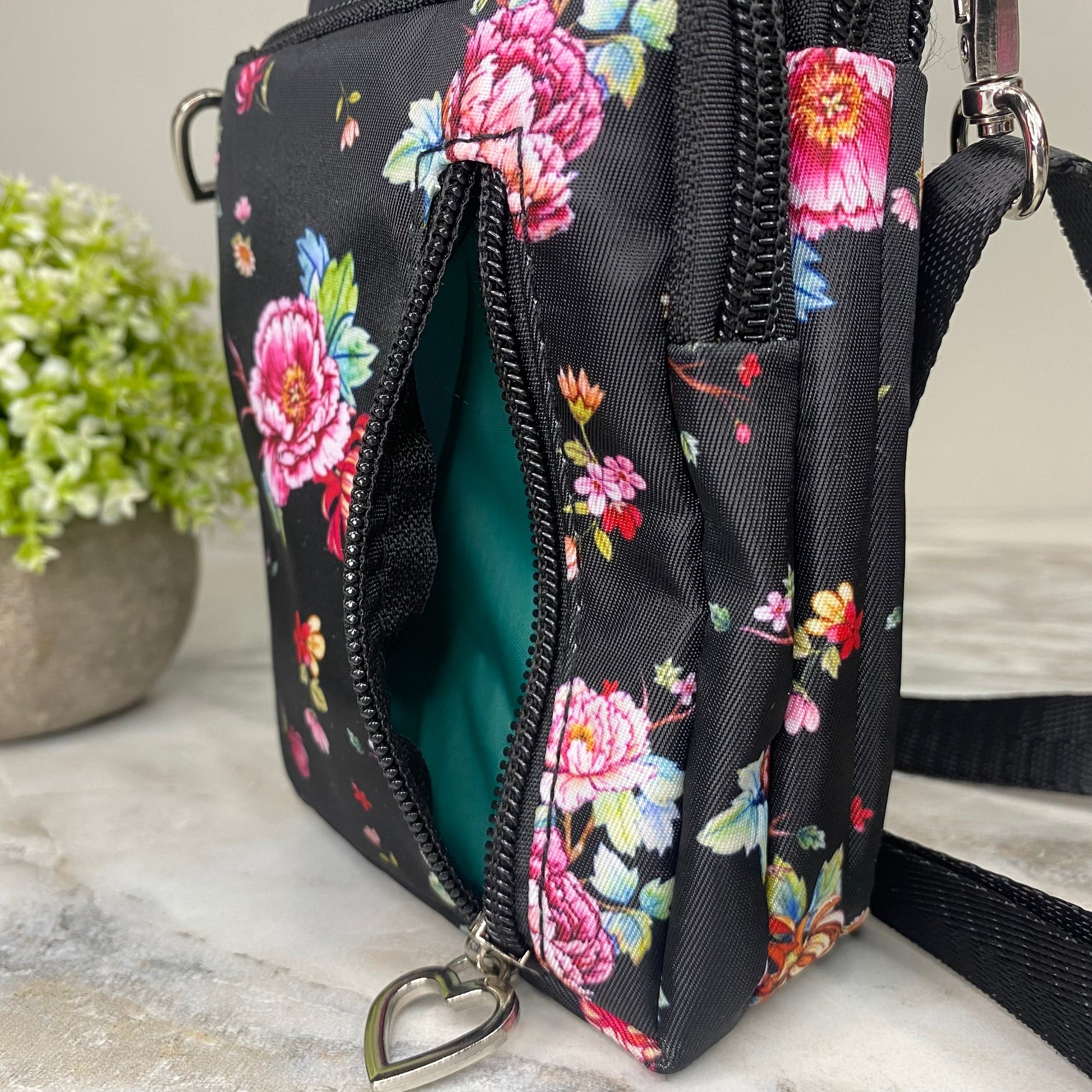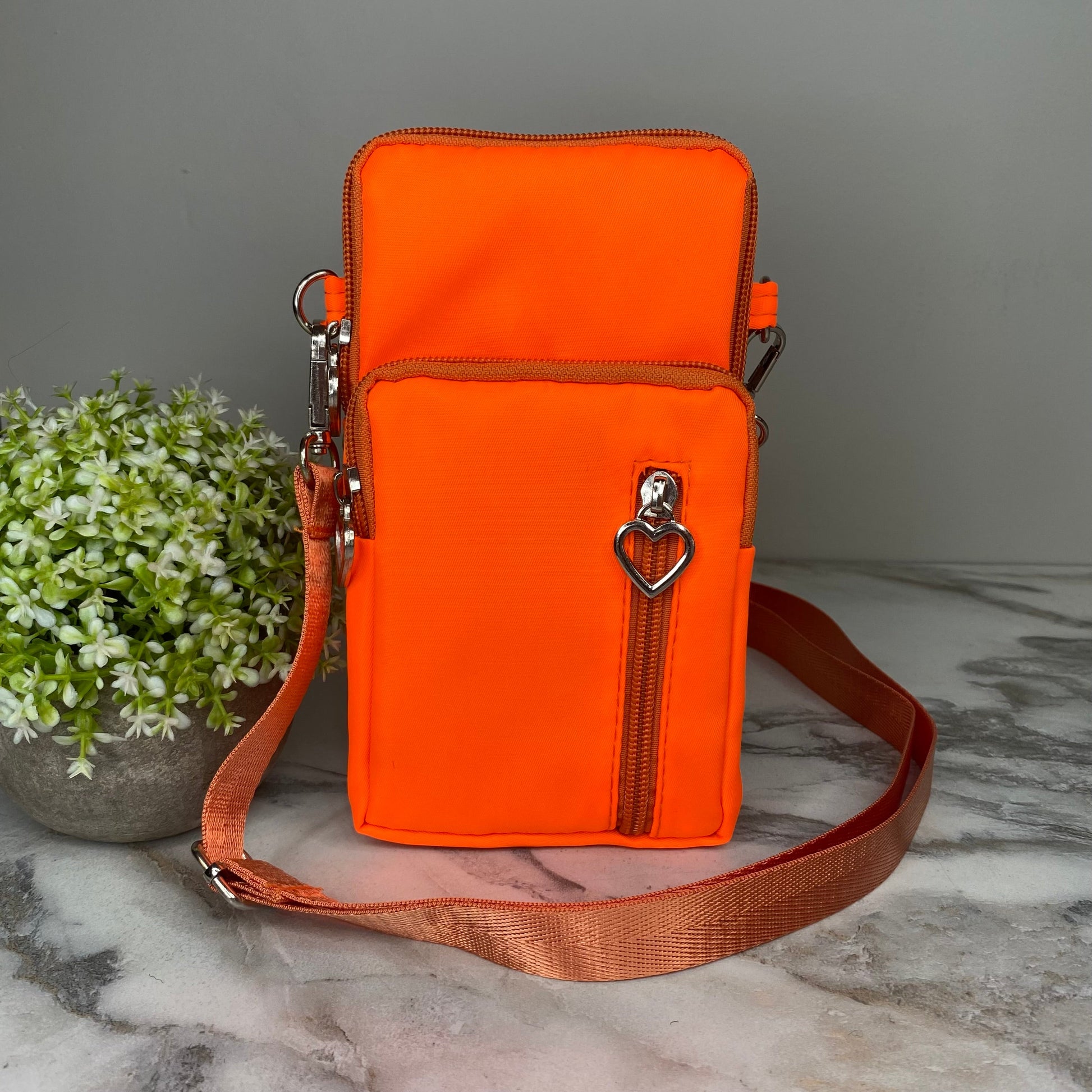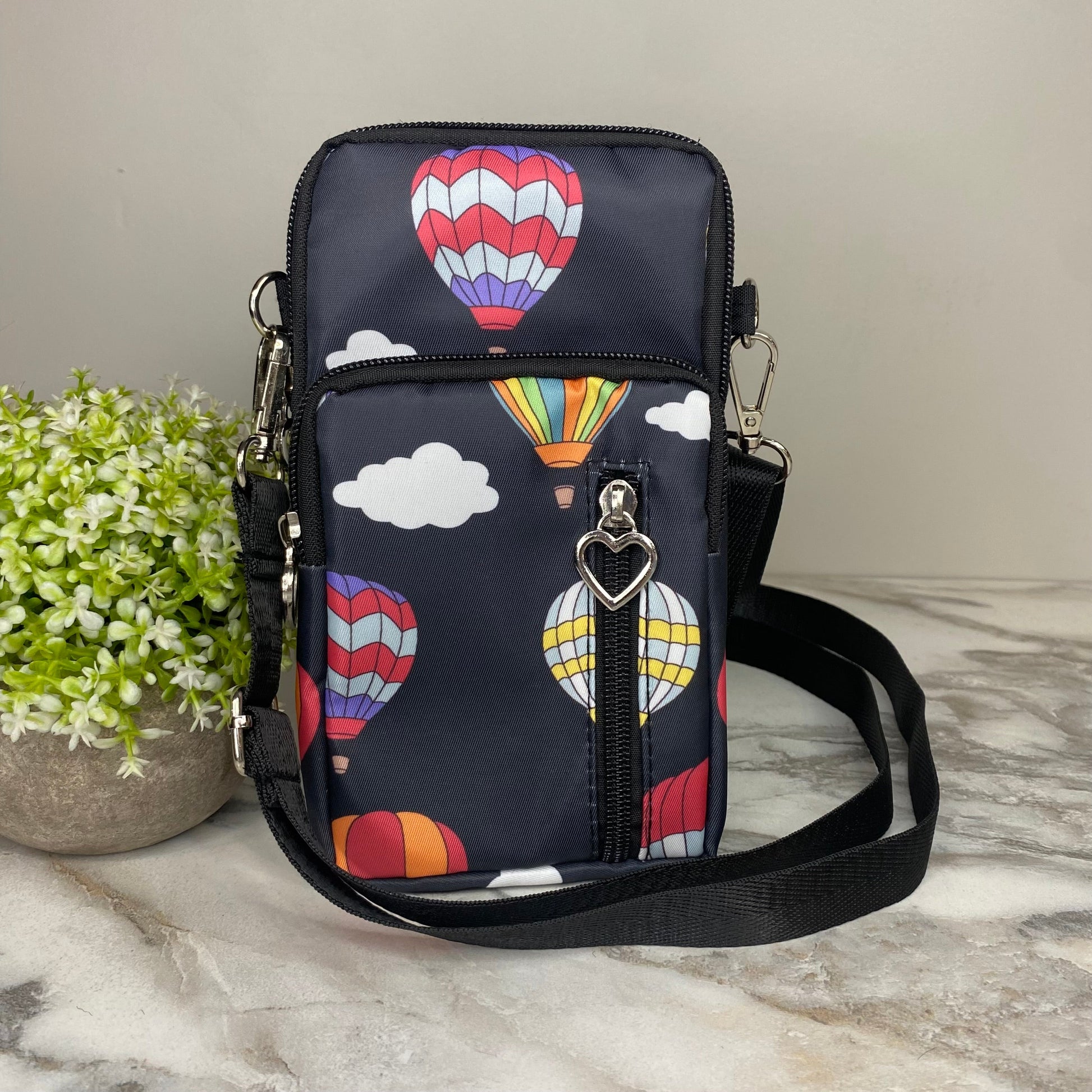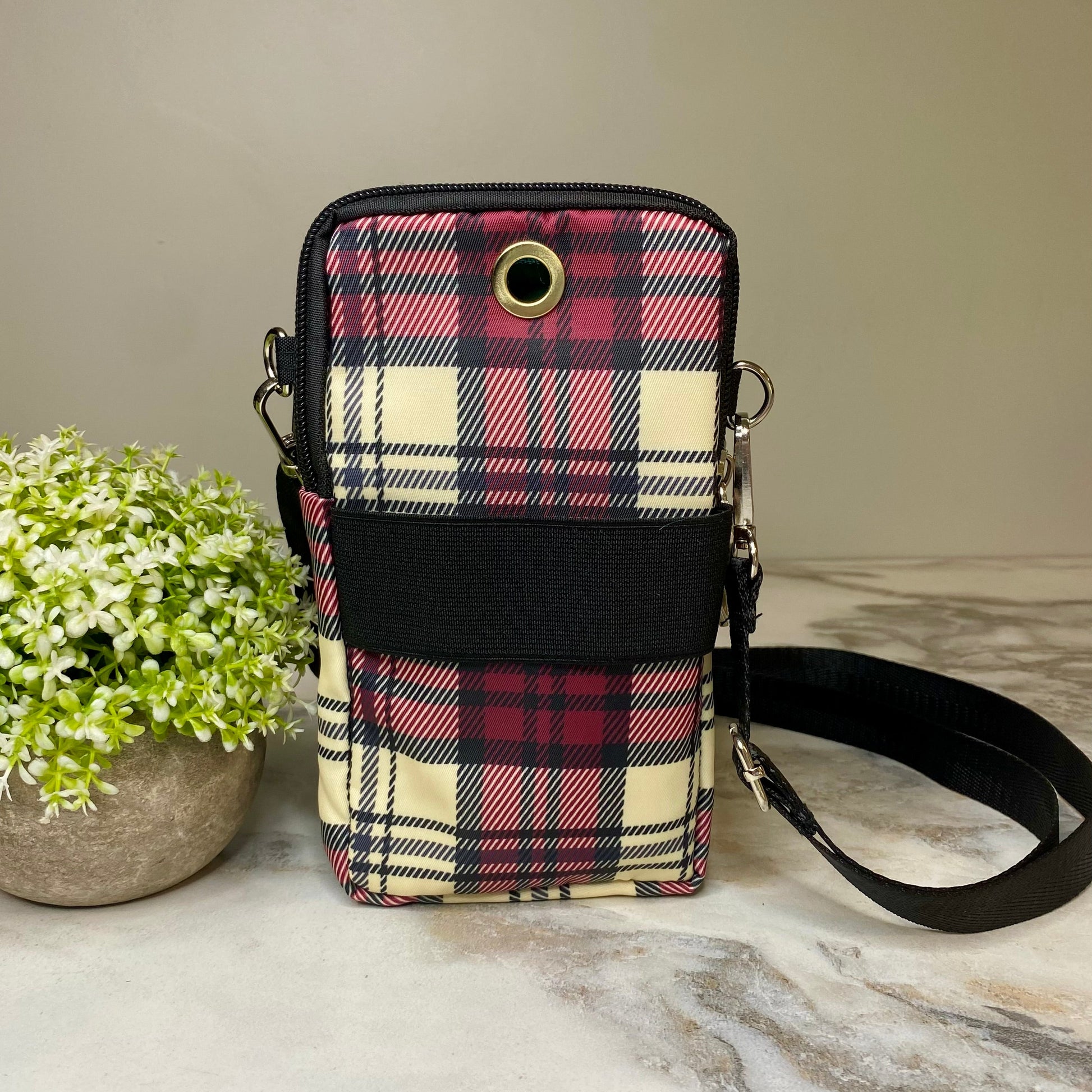 - Removable shoulder or crossbody strap + arm band