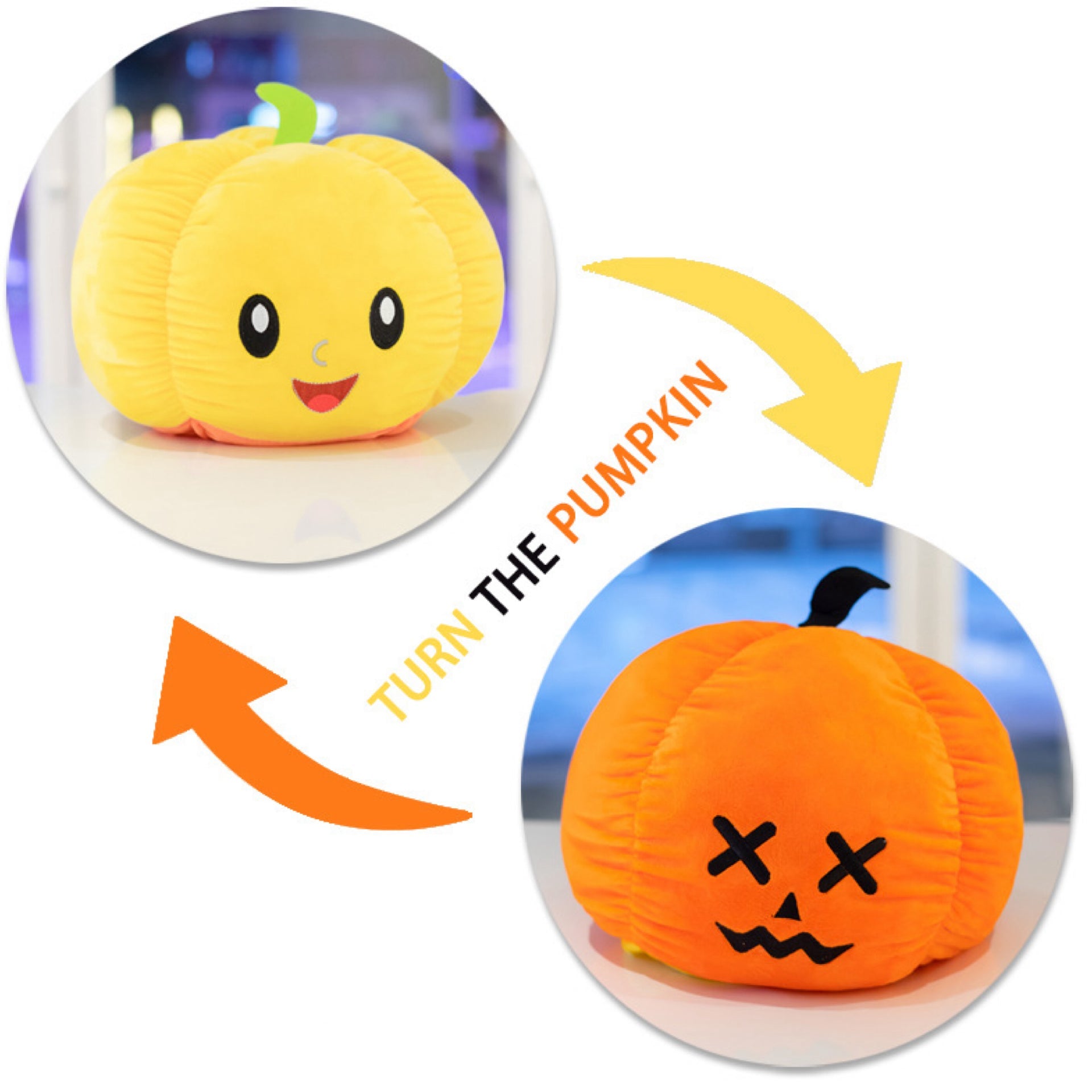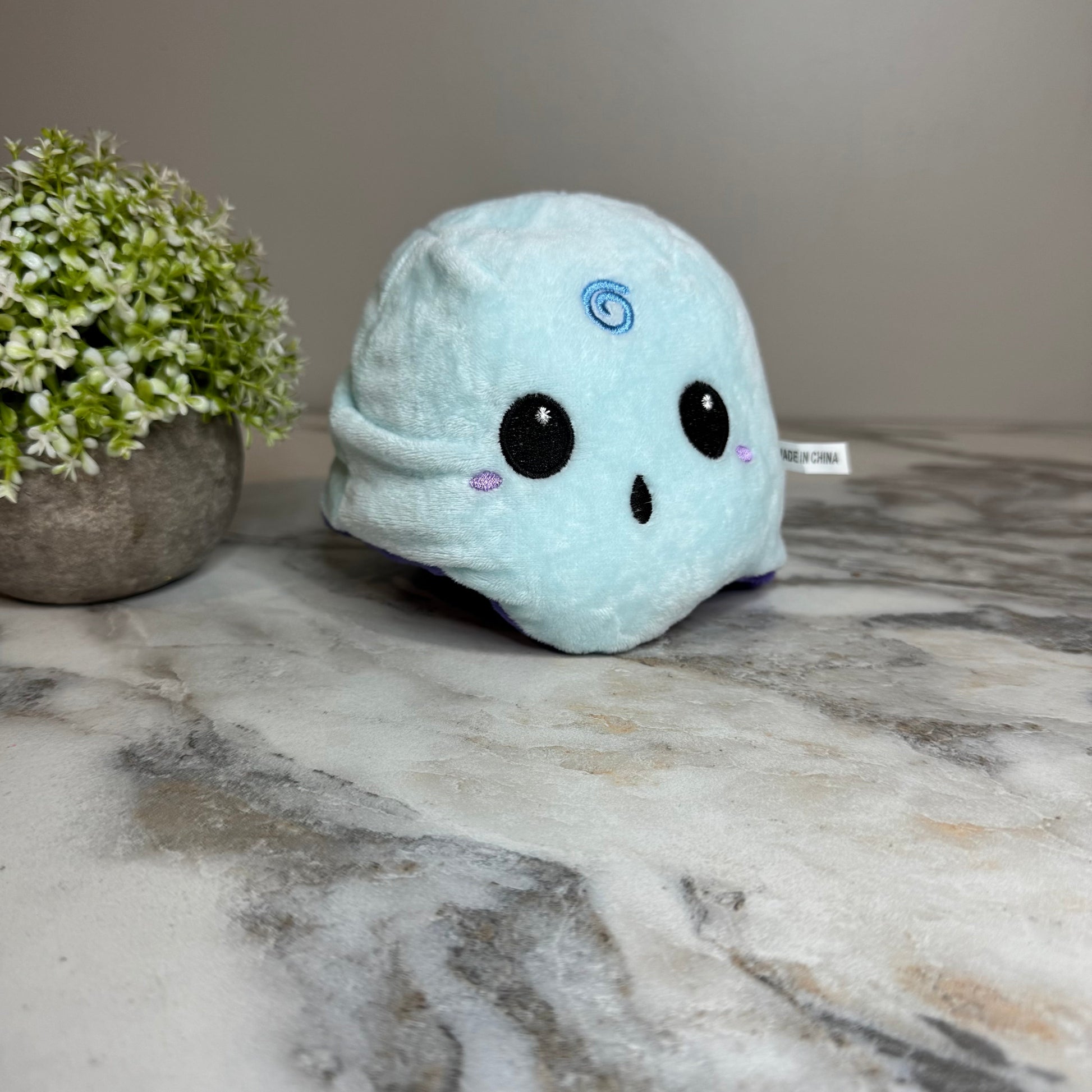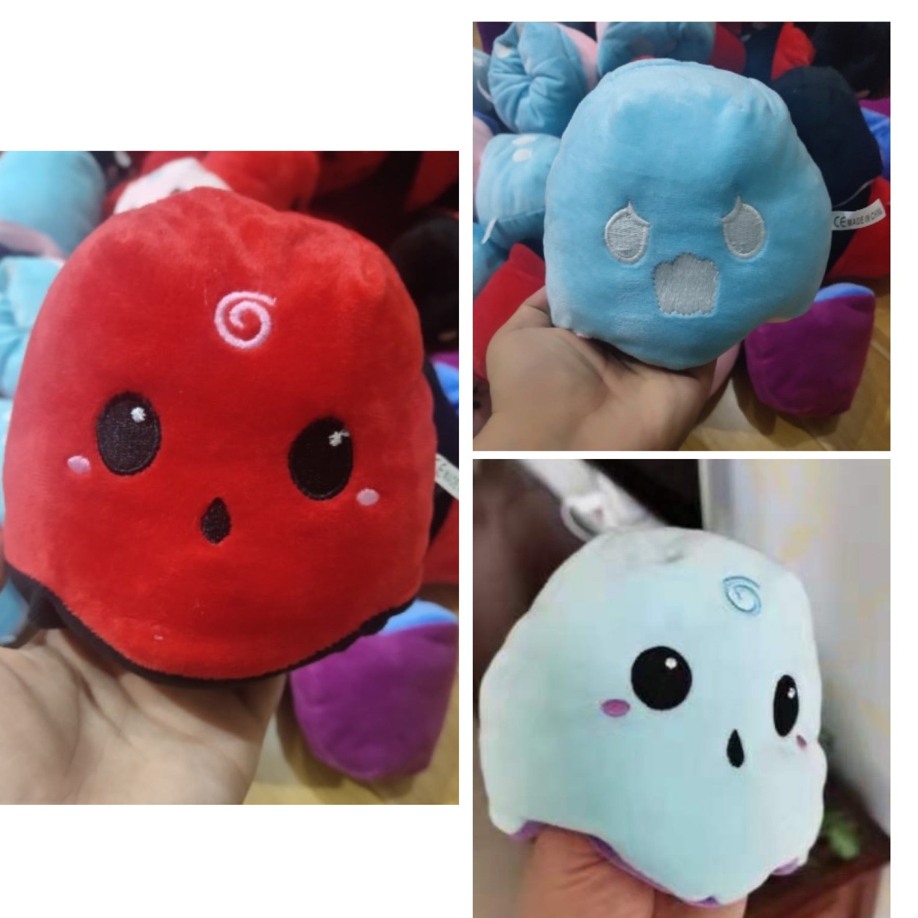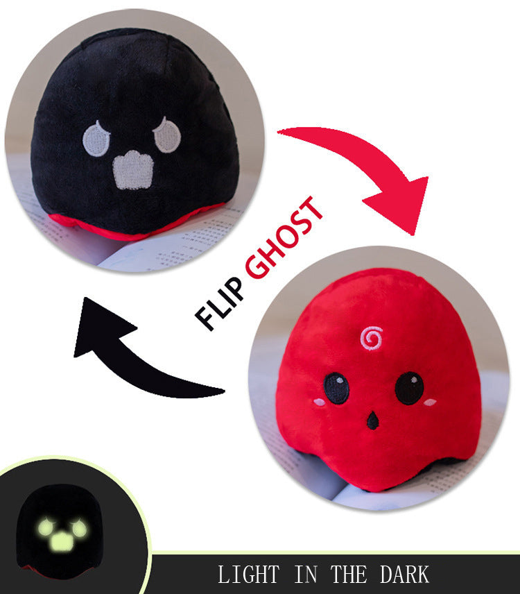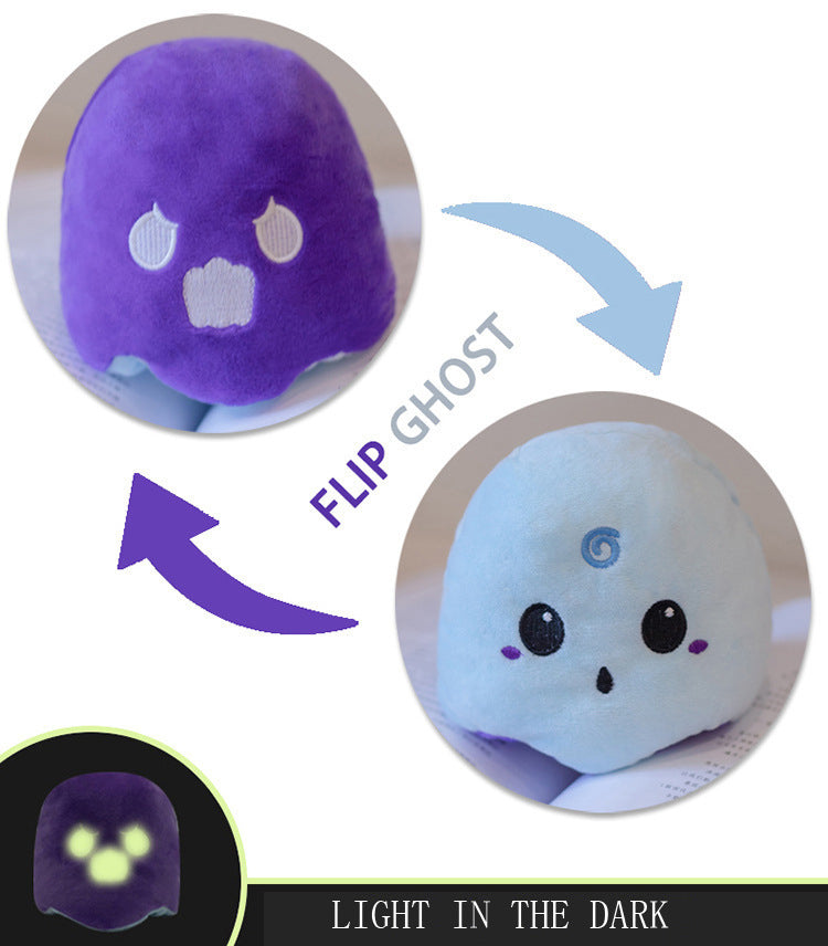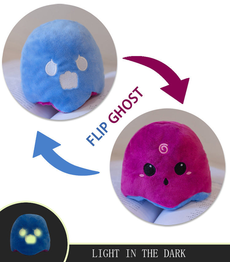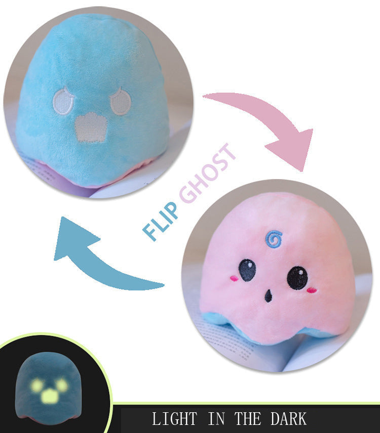 Reversible stuffed animal. Glow in the dark stitching as shown on most items.