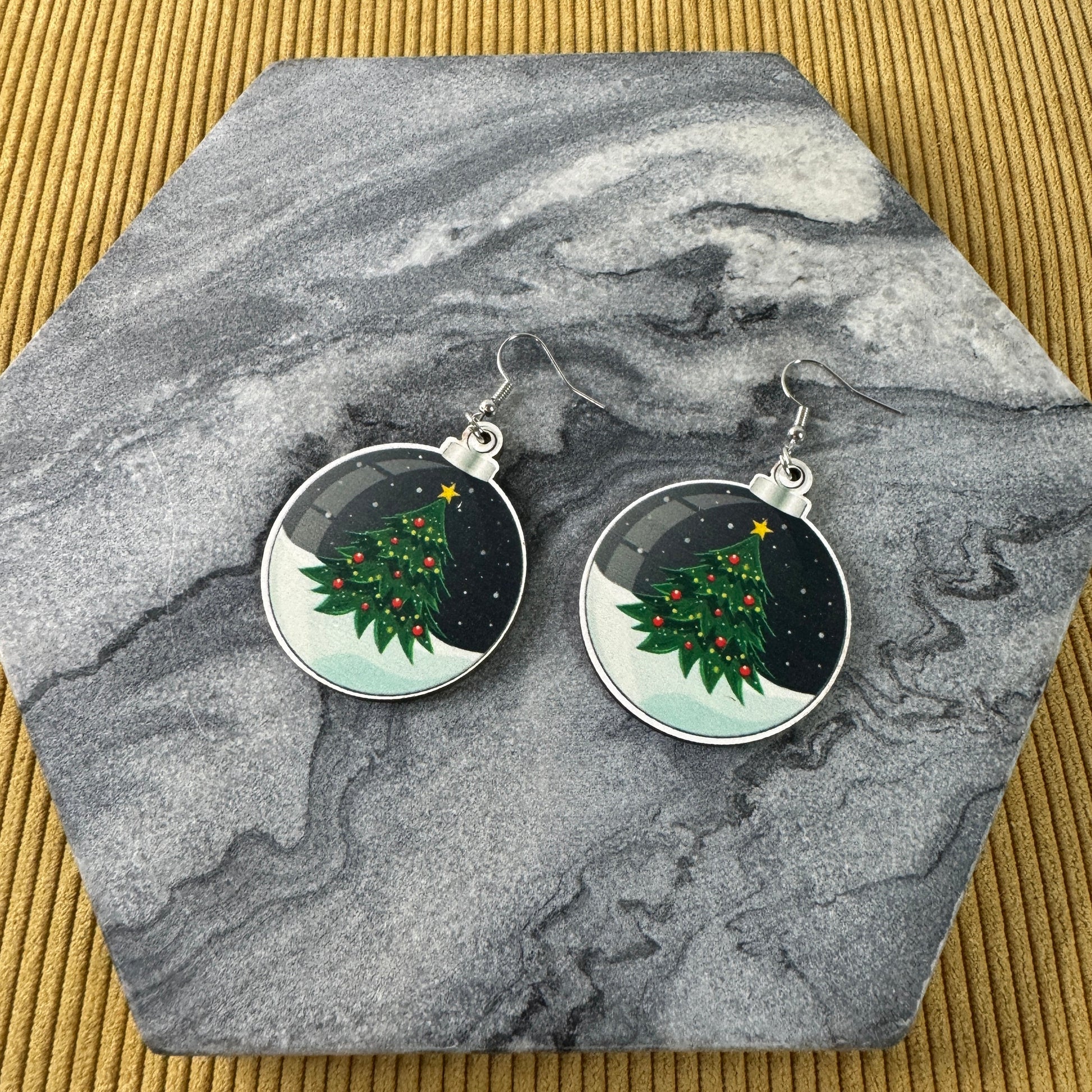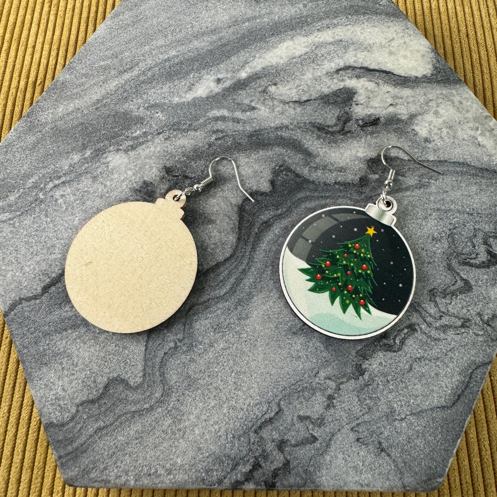 Wooden Dangle Earrings - Holiday Christmas - Tree Ornament